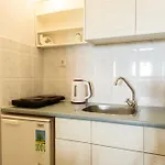금고, 개별 변기, 작은 부엌과 전기 주전자, 냉장고, 유리 제품 갖춘 객실이 있습니다. 헤어드라이어, 수건도 제공됩니다.